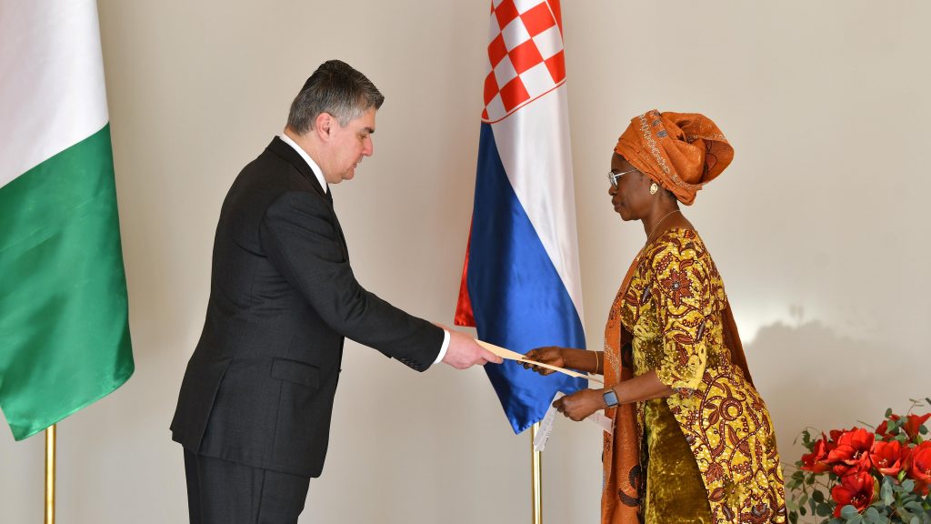 H. E. Dr. Modupe Irele, Ambassador of the Federal Republic of Nigeria, with residence in Budapest, presented her credentials to the President of the Republic of Croatia Zoran Milanović.