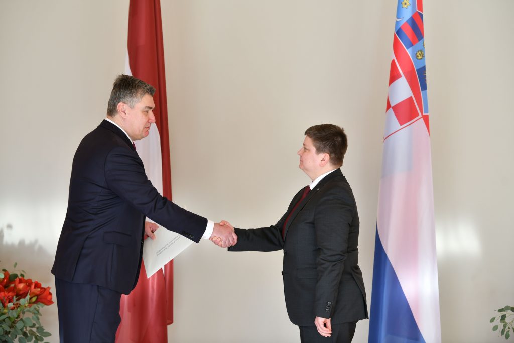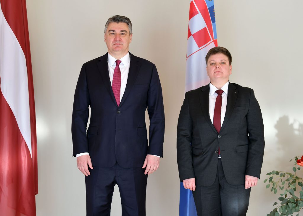 The President of the Republic Zoran Milanović received the credentials from the Ambassador of the Republic of Latvia.