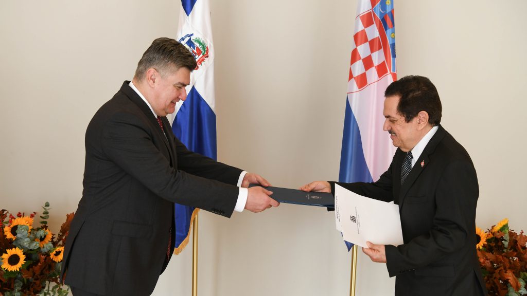 The President of the Republic of Croatia Zoran Milanović received the credentials from the Ambassador of the Dominican Republic.