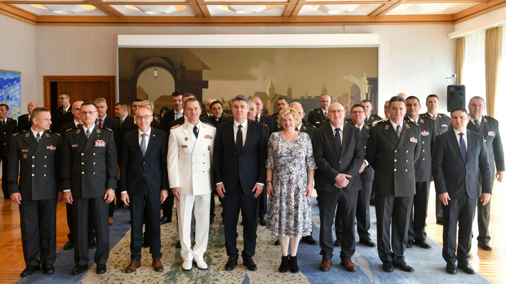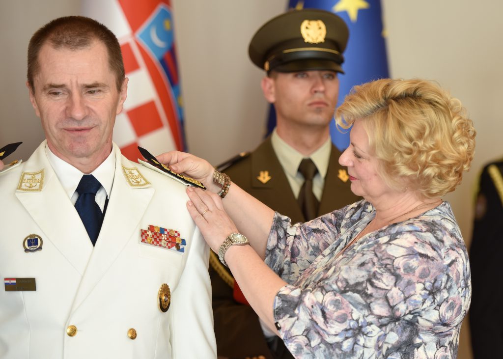 The ceremony which was held in the Office of the President of the Republic was also attended by the wife of Admiral Hranj, Mirjana Hranj, and by the Deputy Prime Minister and Defense Minister Damir Krstičević, the Deputy Chief of the General Staff Lieutenant General Drago Matanović, the Commander of the Croatian Army Major General Siniša Jurković, the Commander of the Croatian Navy Rear Admiral Ivo Raffanelli, the Commander of the Croatian Air Forces Brigadier General Michael Križanec, the Chief Defense Inspector Major General Slaven Zdilar and many other guests from the General Staff of the Croatian Armed Forces and the Ministry of Defense.