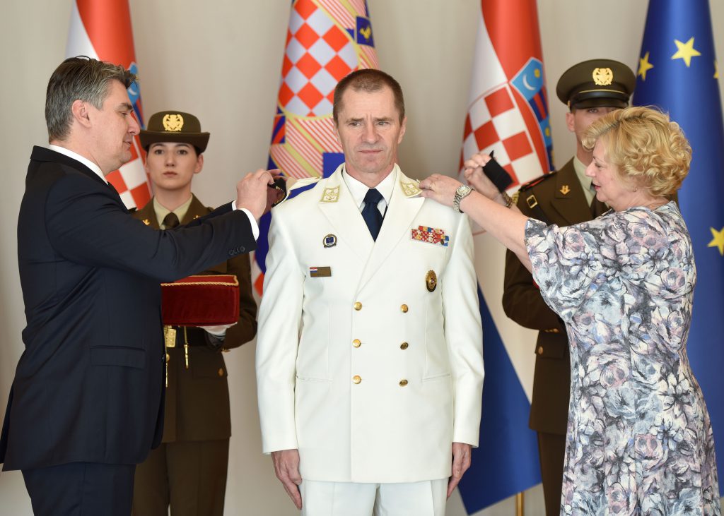 The President of the Republic and Commander in Chief of the Croatian Armed Forces Zoran MIlanović presented the rank of Admiral to Robert Hranj, Chief of the General Staff, during a ceremony.
