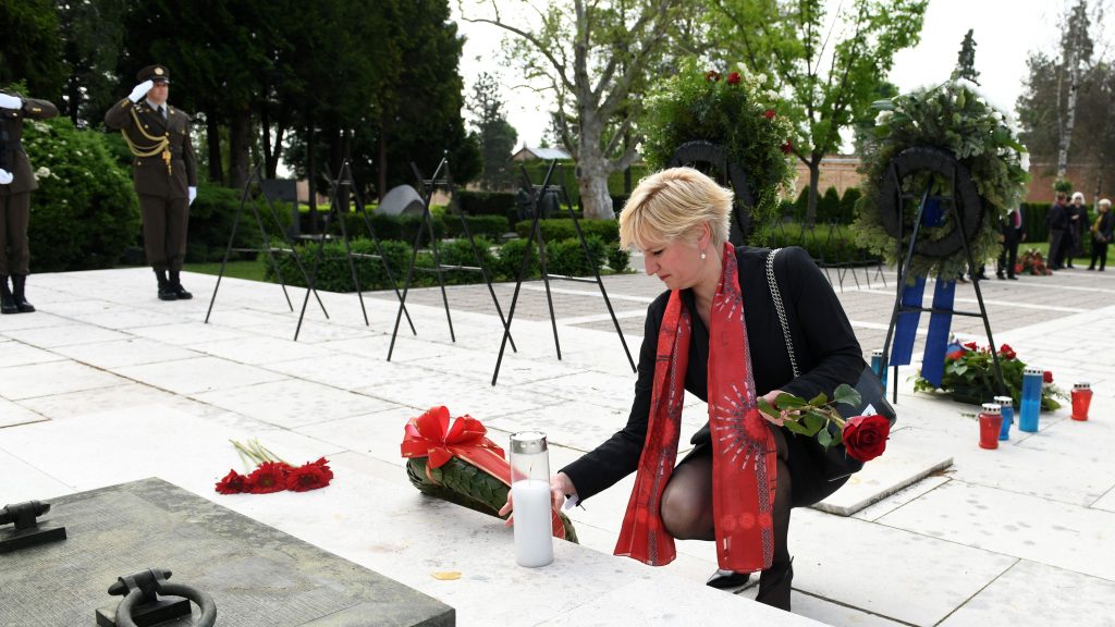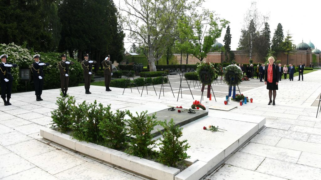 On the occasion of marking Victory Over Fascism Day, the envoy of the President of the Republic of Croatia Adviser to the President of the Republic for Human Rights and Civil Society Melita Mulić today paid tribute to the fallen by lighting a candle at the Tomb of National Heroes at Mirogoj Cemetery.