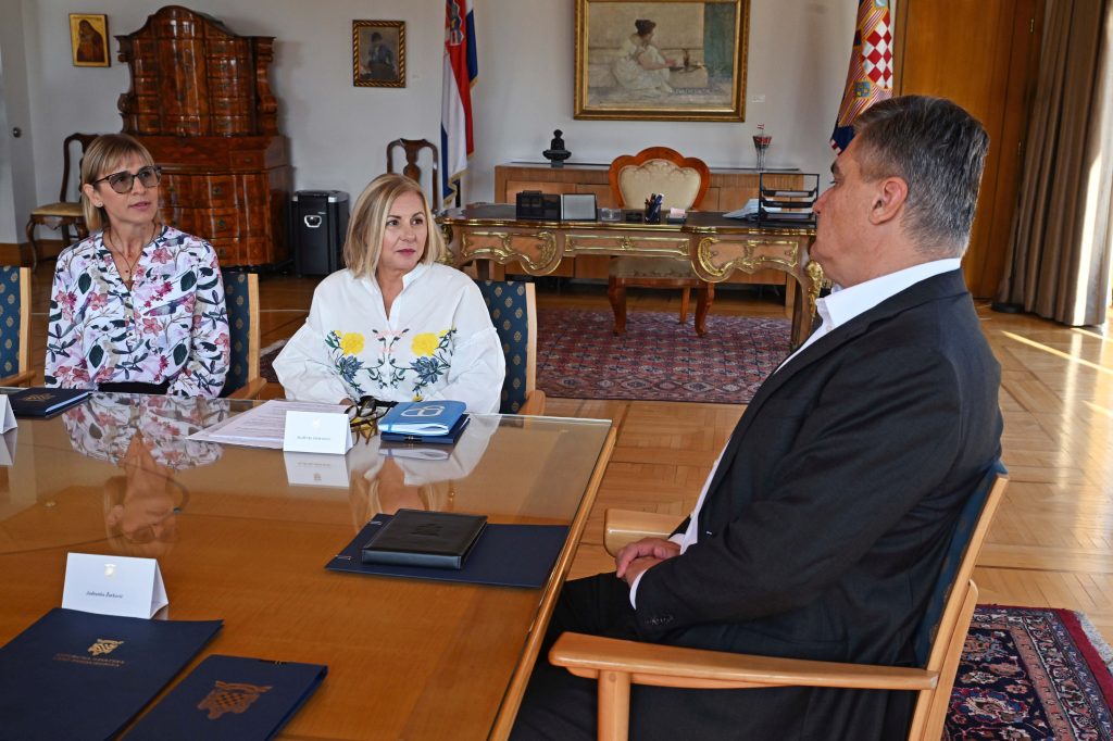 The President of the Republic Zoran Milanović met today with the representatives of the association “Volunteers in Palliative Care La Verna,” Association President Blaženka Eror Matić and Secretary Kristina Jadrijević-Cvrlje. The meeting was held on the occasion of World Hospice and Palliative Care Day, which is marked on 14 October.