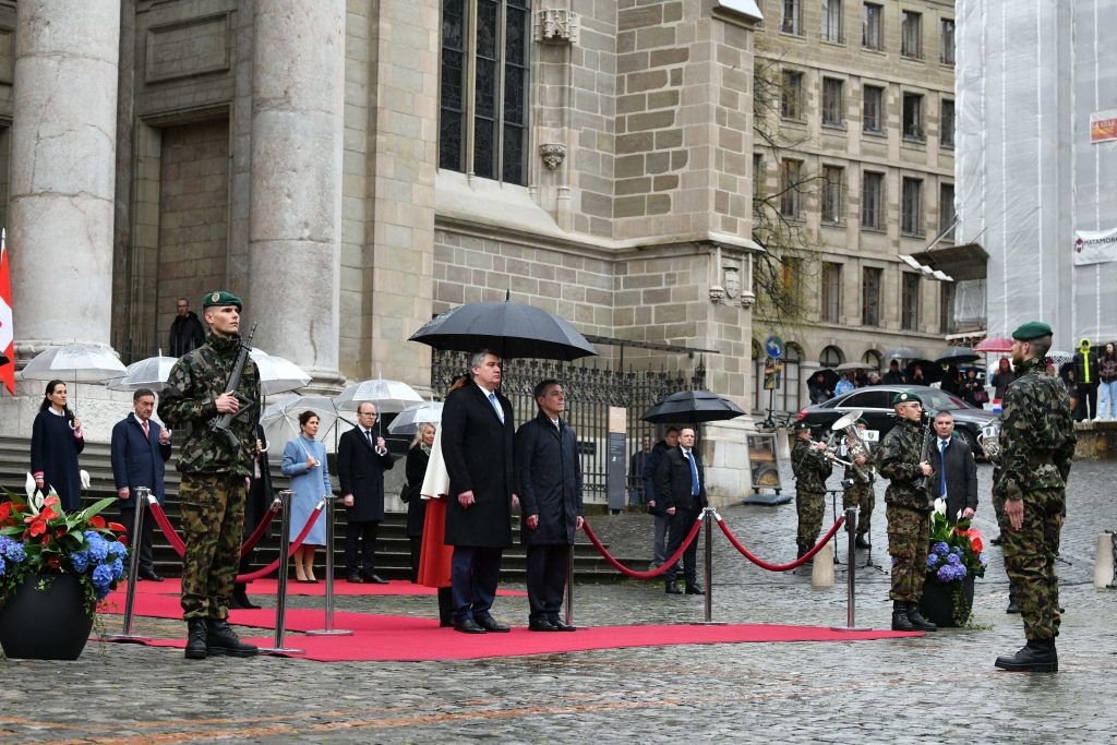 The bilateral part of President Milanović’s Official visit to Switzerland began at an official welcoming ceremony in front of St. Pierre Cathedral in Geneva. Subsequently, President Milanović and President Cassis had a tête-à-tête, which was followed by a bilateral meeting between the delegations of the Republic of Croatia and the Swiss Confederation. President Milanović’s Official visit marks 30 years of diplomatic relations between the two countries.
