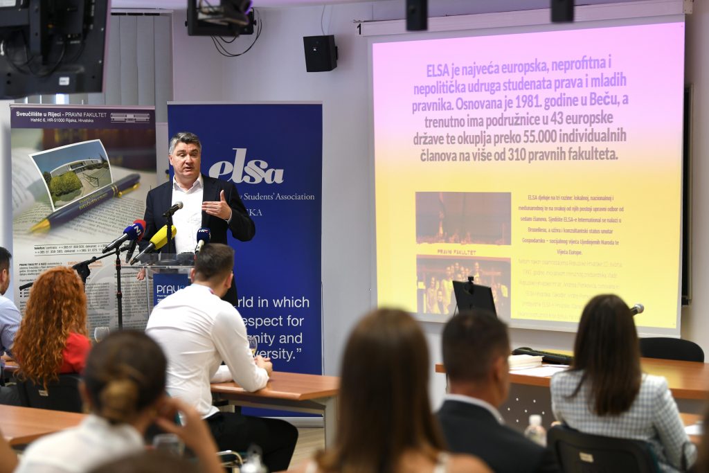 The President of the Republic Zoran Milanović attended today the official opening of the 8th Edition of Summer ELSA Law School at the Faculty of Law of the University of Rijeka, which is focusing on the topic of diplomacy and law.