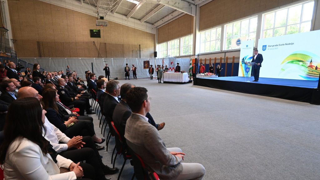 At the special session of the Municipal Council of the town of Sveta Nedelja, public recognitions and awards were presented to the most deserving individuals and associations for their contribution to the town’s progress, and a friendship agreement between the town of Sinj and the town of Sveta Nedelja was signed. Apart from President Milanović, opening addresses at the ceremony were delivered by the mayors of Sveta Nedelja and Sinj Dario Zurovec and Miro Bulj, President of the Sveta Nedelja Town Council Matej Vrdljak, and Deputy Zagreb County Prefect and envoy of the Prime Minister Ervin Kolarec. Adviser to the President of the Republic for Human Rights and Civil Society Melita Mulić was alongside President Milanović.