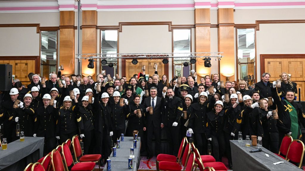 The President of the Republic Zoran Milanović participated in the 35th mining ceremony, “Skok preko kože” (Jump over the Apron), held to mark Saint Barbara’s Day, the patron saint of miners, oil workers, and geologists. Through this ceremony, freshmen are symbolically welcomed into the honourable social class of miners.