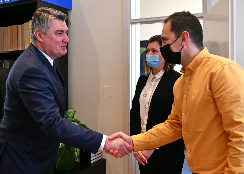Alongside President Milanović were the Head of the Cabinet of the President Bartol Šimunić and the Adviser to the President for Human Rights and Civil Society Melita Mulić.