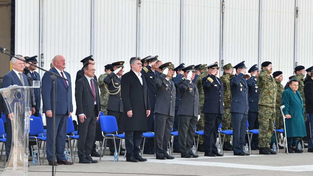 Attending the ceremony aside from the President of the Republic and Commander in Chief of the Croatian Armed Forces were the State Secretary in the Croatian Ministry of Defense and envoy of the Defense Minister Branko Hrg, the Deputy Chief of the General Staff of the Croatian Armed Forces Lieutenant General Siniša Jurković, the Commander of the Croatian Air Force Brigadier General Michael Križanec, and the Commander of the 93rd Wing of the Croatian Air Force Colonel Krešimir Ražov.