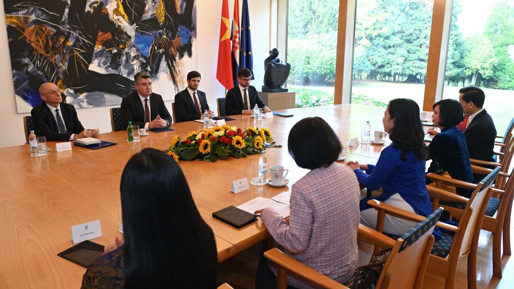 The President of the Republic Zoran Milanović held a meeting with the Vice President of the Socialist Republic of Vietnam Võ Thị Ánh Xuân, who is on an official visit to the Republic of Croatia.