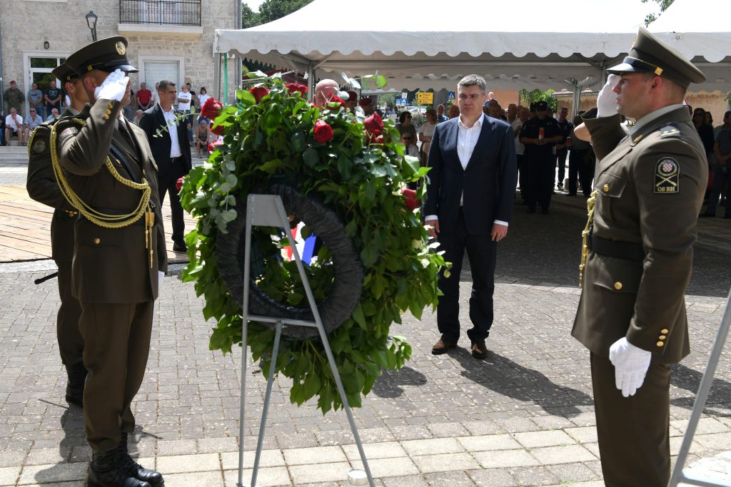 The President of the Republic Zoran Milanović today paid tribute to the fallen defenders and civilians of the Promina area by laying a wreath at the main memorial cross in Oklaj on the occasion of the observance of the Day of Remembrance of Military and Civilian Homeland War Victims from the Promina area and the 140th anniversary of the establishment of the Municipality of Promina.