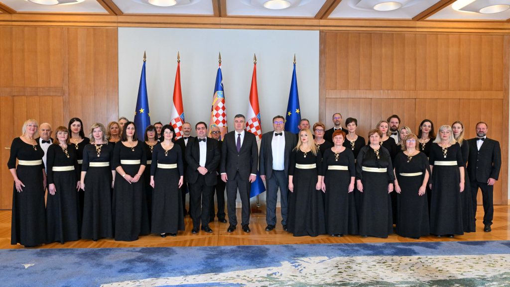 The representatives of the Croatian Choir Society “Kalnik” noted that they participate in all county and state festivals representing Koprivnica-Križevci County, as well as in other state and international competitions, where they have achieved notable results. The choir cultivates a wide repertoire of compositions by domestic and foreign authors from early Renaissance to the works of contemporary authors. They presented their choir to President Milanović with two compositions: “Domovini” and “Moj kraj”.