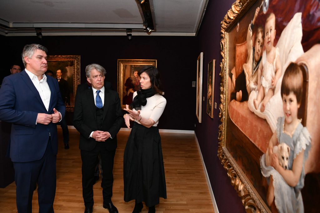 Accompanied by the Klovićevi Dvori Gallery director Antonio Picukarić and under the professional guidance by the head of the curatorial department and author of the exhibition “Roots and Wings: Vlaho Bukovac in Zagreb, Cavtat and Vienna, 1893-1903”, President Milanović viewed the exhibition depicting Bukovac’s life and oeuvre. Also exhibited was Vlaho Bukovac’s “Slab pazar” (Poor Sales), painting owned by the Office of the President of the Republic of Croatia otherwise on exhibit in the President’s cabinet.