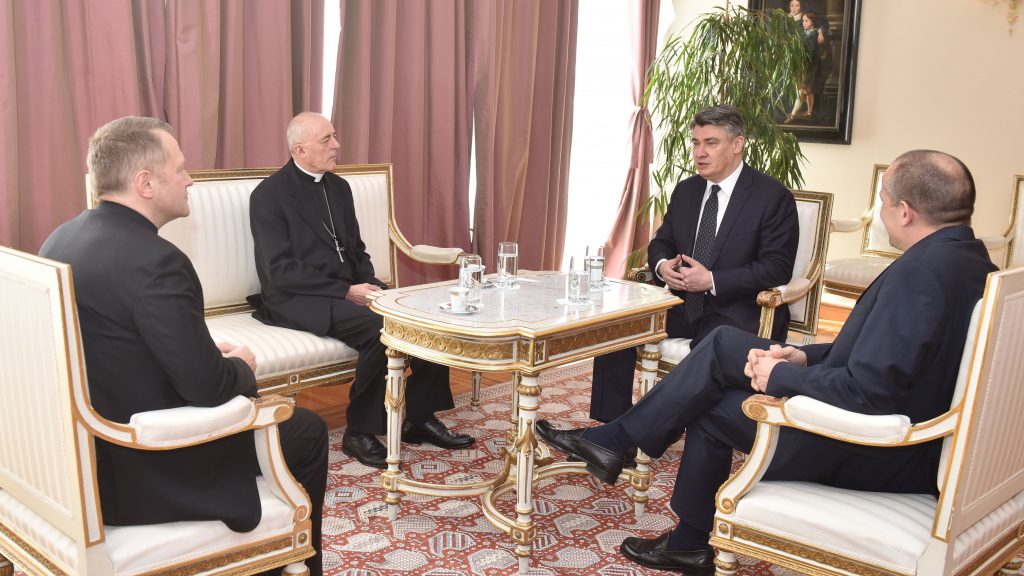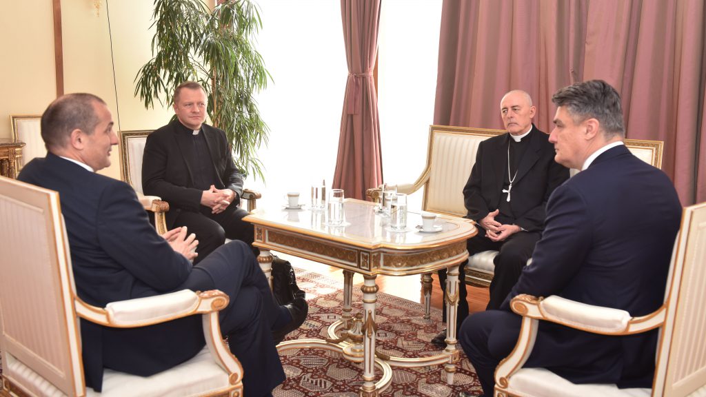 Attending the meeting in addition to President Milanović and Archbishop Lingua were the Head of Office and Adviser to the President for Foreign and European Policy Orsat MIljenić, PhD, and the Second Counsellor of the Apostolic Nunciature Msgr. Janusz Stanislaw Blachowiak.