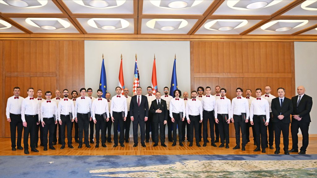 Present in the Office of the President of the Republic were the following choir members: Vladimir Fistrić, Quinn Lee Fletcher, Noa Milin, Jan Štajfer, Hrvoje Ladašić, Niko Matković, Aryan Ghiassi, Kristian Jambrošić, Davor Pavlović, Ivan Radak, Domagoj Žokalj, Karlo Kević, Sergej Zajcev, Herman Zvonimir Došilović, Nikola Sebastian Jambrošić, Dominik Milde, Dario Vrbaslija, Josip Bogdanović, Luka Grubišin, Duje Ćubelić, Ivan Timko, Gabrijel Rajić, Srećko Matković, Anatoly Milashin, Lovro Bučar and Frane Kuzmanić.