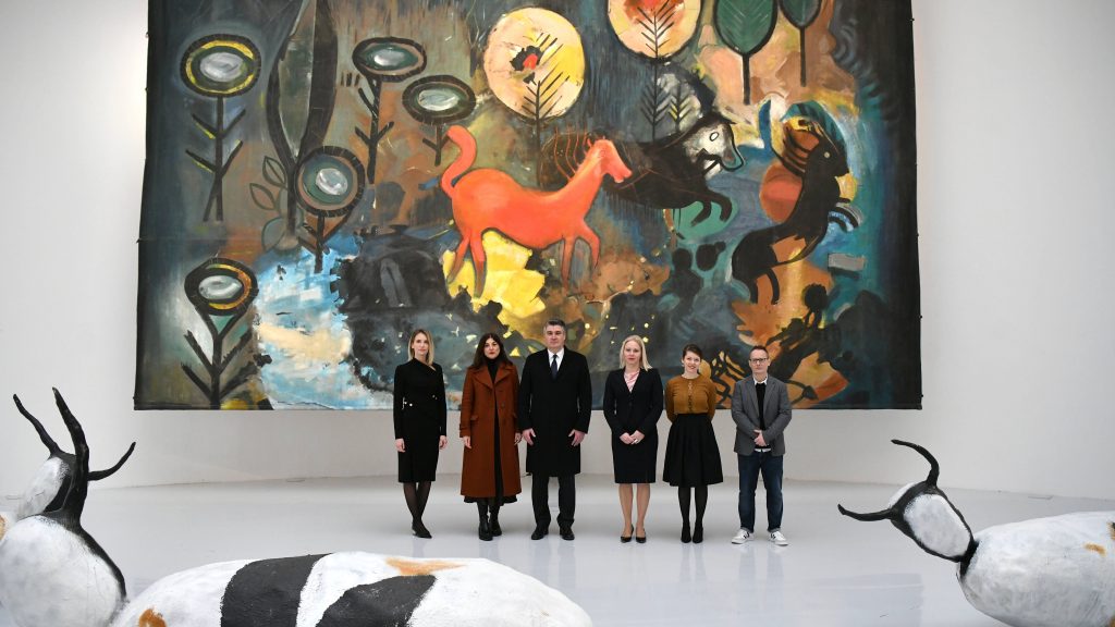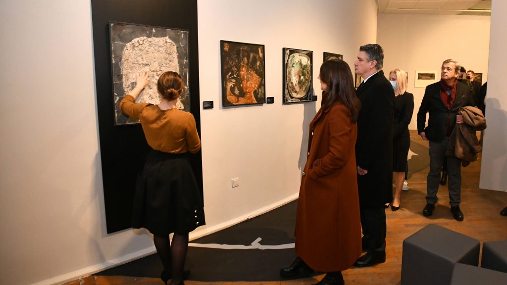 Apart from the curator of the exhibition Anita Ruso Brečić, also joining President Milanović for the tour of the exhibition were the Dean of the Academy of Fine Arts of the University of Zagreb and President of the Croatian Association of Artists Tomislav Buntak, the Director of the Croatian Association of Artists Ivana Andabaka, and the President of the ArtRencontre Association and co-organizer of the exhibition by Slavko Kopač Tamara Floričić.