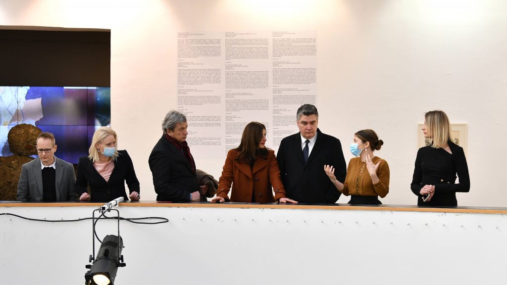 With the expert guidance of the curator of the exhibition Anita Ruso Brečić, President Milanović viewed a selection of the best visual works, sculptures and poetry by Slavko Kopač from private collections and museums, which will be on display at the Meštrović Pavilion until late March. The exhibition by Slavko Kopač is a project of national significance which revalorizes the work and personality of Slavko Kopač, an artist whose oeuvre had a strong impact on the post-war art scene in the second half of the 20th century at home and abroad.