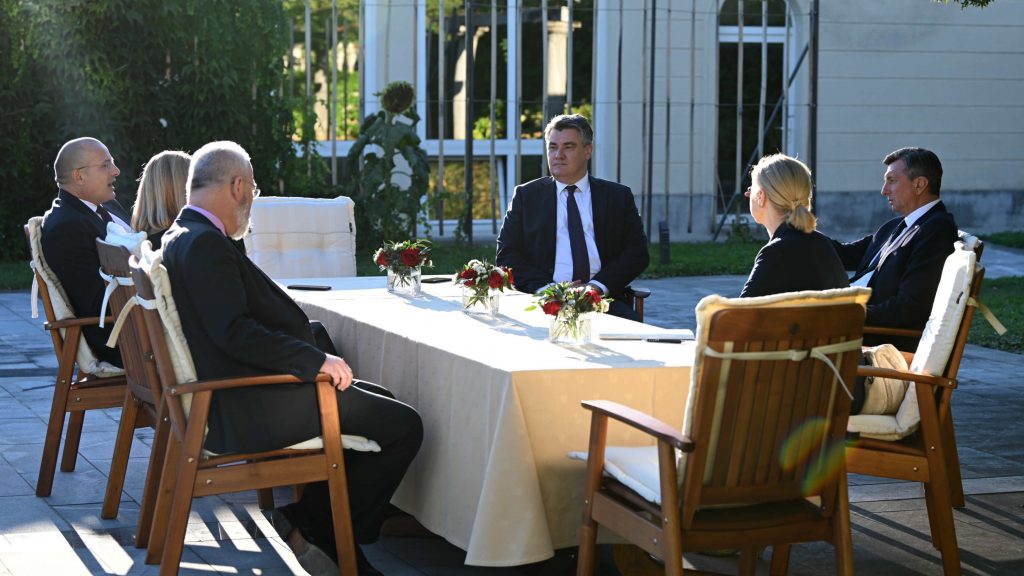 Alongside President Milanović at the meeting with Slovenian President Pahor were the Head of the Office of the President of the Republic Orsat Miljenić and the Adviser to the President for Foreign and European Policy Neven Pelicarić.