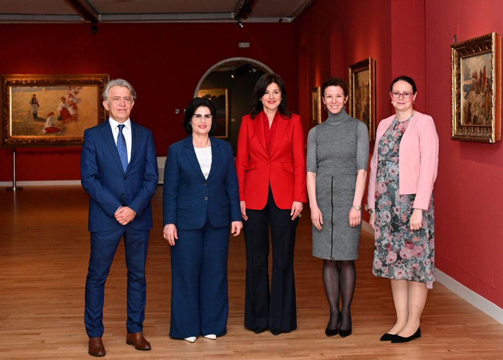 Spouses of Croatian and Albanian Presidents Sanja Musić Milanović and Armanda Begaj View “Oton Iveković – a Retrospective Exhibition“