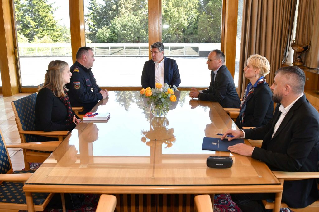 Uz Predsjednika Republike na sastanku su bili savjetnik Predsjednika za obranu i nacionalnu sigurnost Dragan Lozančić i savjetnica Predsjednika za ljudska prava i civilno društvo Melita Mulić.
