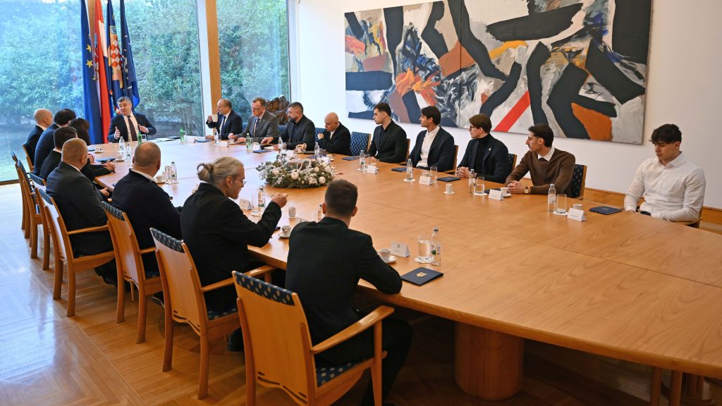 Predsjednik Republike Hrvatske Zoran Milanović primio je danas predstavnike Hrvatskog plivačkog saveza, trenere i plivače hrvatske plivačke reprezentacije koji su sudjelovali i osvojili medalje na Europskom prvenstvu u plivanju u 25-metarskim bazenima.