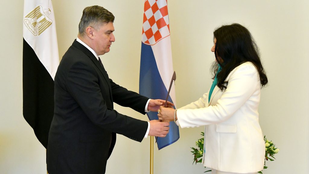 Predsjednik Republike Hrvatske Zoran Milanović primio je vjerodajnice veleposlanice Arapske Republike Egipta.